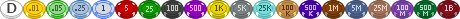 Beginning with version 4, the dealer button and chip set can be customized. This image must be exactly 460 pixels in width by 19 pixels in height, consisting of dealer button plus 19 poker chip denominations, each at a width of 23 pixels. From left to right, the order of the chips are as follows: Dealer, 0.01, 0.05, 0.25, 1, 5, 25, 100, 500, 1K, 5K, 25K, 100K, 1M, 5M, 25M, 100M, 500M, 1B. The default chip set is displayed below in PNG format: The recommended size for individual avatars is now 64 x 64 pixels. You may use other sizes as long as you maintain that same width = height aspect ratio. The default communal set consists of 64 avatars in a single 4096 x 64 horizontal sprite. When replacing the default communal set with your own, you may include up to 64 images (each identical in size) in your sprite. You can use the Image Stitcher utility to create your sprite from individual images. In version 5 and 6, the communal avatar set is contained in a single image, which must be 32 pixels in height and a multiple of 32 pixels in width, up to 2048 pixels for a maximum of 64 avatars. To convert a version 4 avatar set to version 5/6, simply resize it in a graphics editor from 48 to 32 pixels in height while maintaining the same aspect ratio. In version 4, the communal avatar set is contained in a single image, which must be 48 pixels in height and a multiple of 48 pixels in width, up to 3072 pixels for a maximum of 64 avatars. In versions 2 and 3, you can replace the communal avatar set by specifying an Avatar Folder in the Client Settings group and then placing individual 48 x 48 pixel image files (64 images max) in that folder, starting with a file name of Avatar01.* (where * is PNG, GIF, or JPG). An image stitcher program is provided on the Utilities page for combining or splitting image files for the avatar, cards, and chips options.