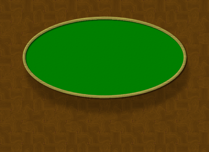 The main "Table graphic" includes an oval-shaped table over a background design. The overall size must be exactly 700 pixels in width and 510 pixels in height as shown below. This is the same as previous versions but the oval shape itself is now taller and less wide than before to accommodate the new seat design and 7-card game support. The green felt oval is centered at x:350, y:207 with a width of 487 and a height of 283. The table rim is approximately 11 pixels wide. It won't hurt to be off by a pixel or two on those dimensions. The table drop shadow is optional. Note that there are color settings for the text that is drawn on the table (Table top text color) and over the background area (Table background text color). These both default to white so if you use light colors in your graphic, be sure to adjust those colors accordingly in the client settings.