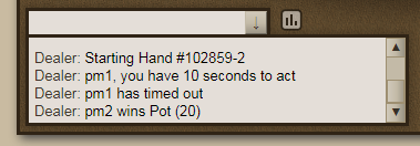 In previous versions, when a ring game player lost all their chips and did not have the auto-rebuy feature enabled, they would have to sitout the next hand until they manually added more chips. Now they are presented with the three buttons you see above. If they click the "Add Chips" button they will perform a quick rebuy (equal to their last one or their initial buy-in) and stay in for the next hand. The amount of time given to decide is determined by your "Rebuy seconds" setting in the Client Settings group. If they do not respond in time they will be put in sitout mode.